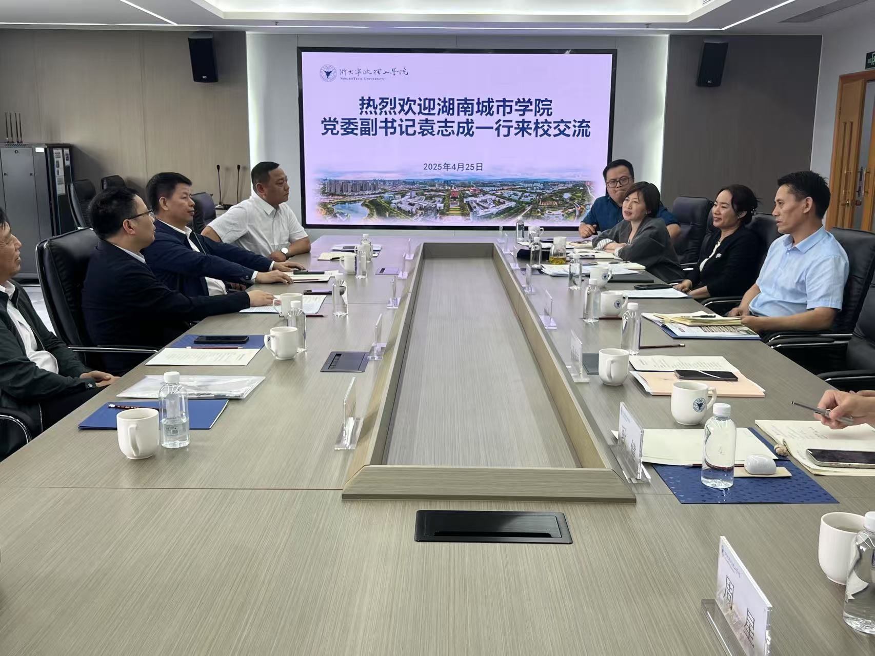 此次访企拓岗期间,袁志成一行专程前往浙大宁波理工学院调研交流,学习该校在整体发展规划、国际教育、学院发展、人才培养和学生工作等方面的先进经验。两校将加强资源共享,在学科交叉、学生实习就业等领域开展务实合作,共同探索高等教育与区域经济联动发展的新路径。