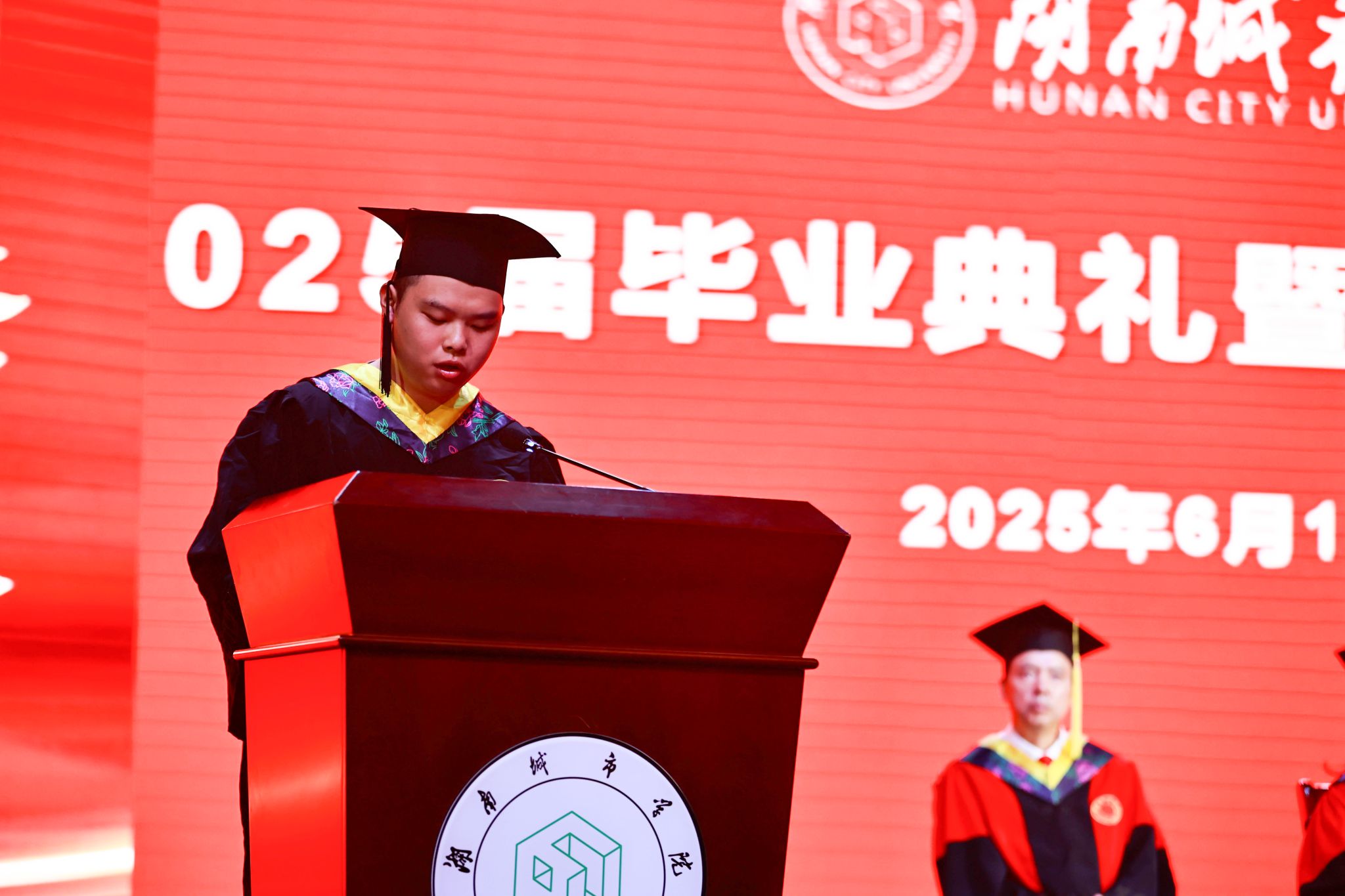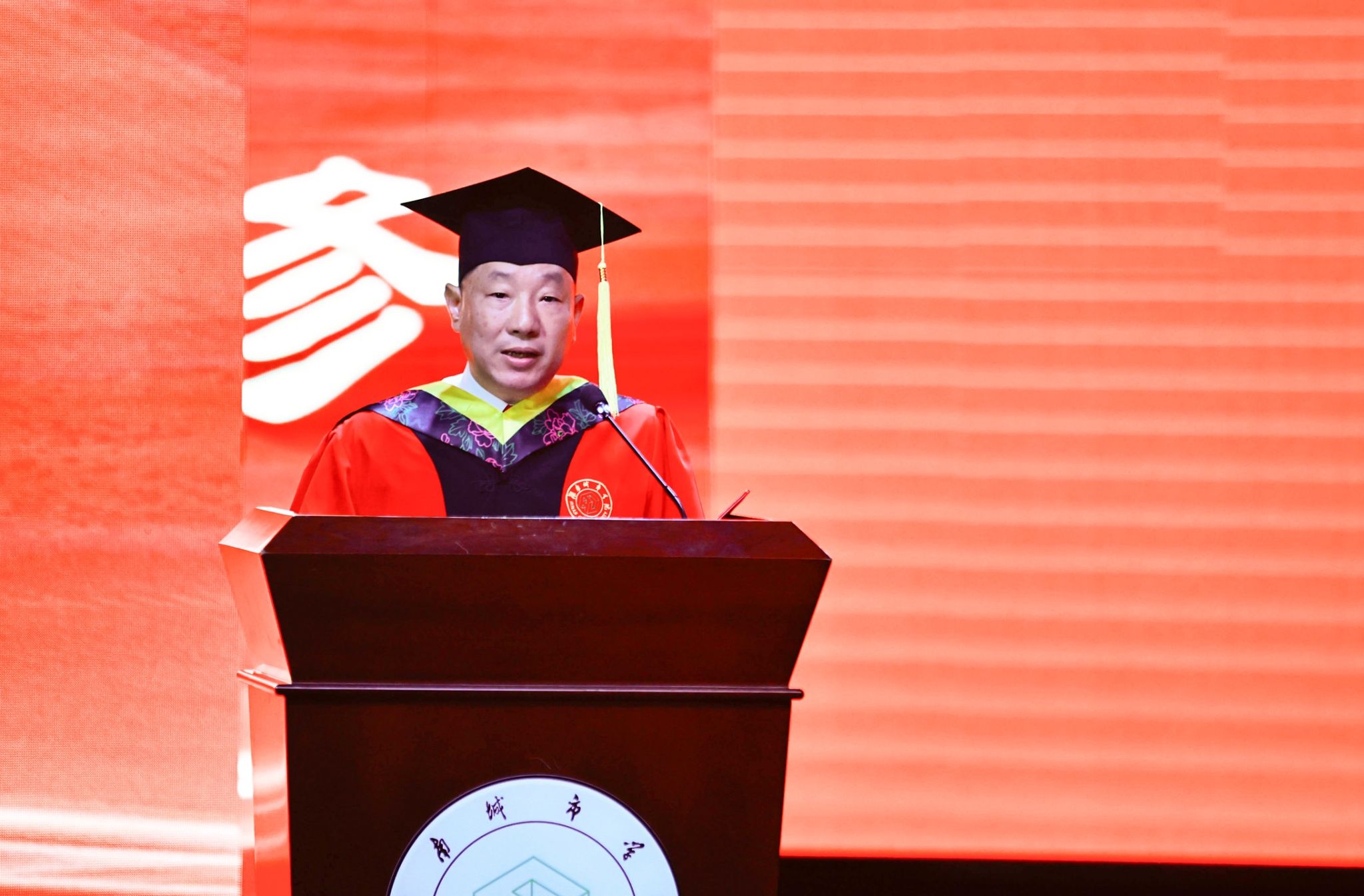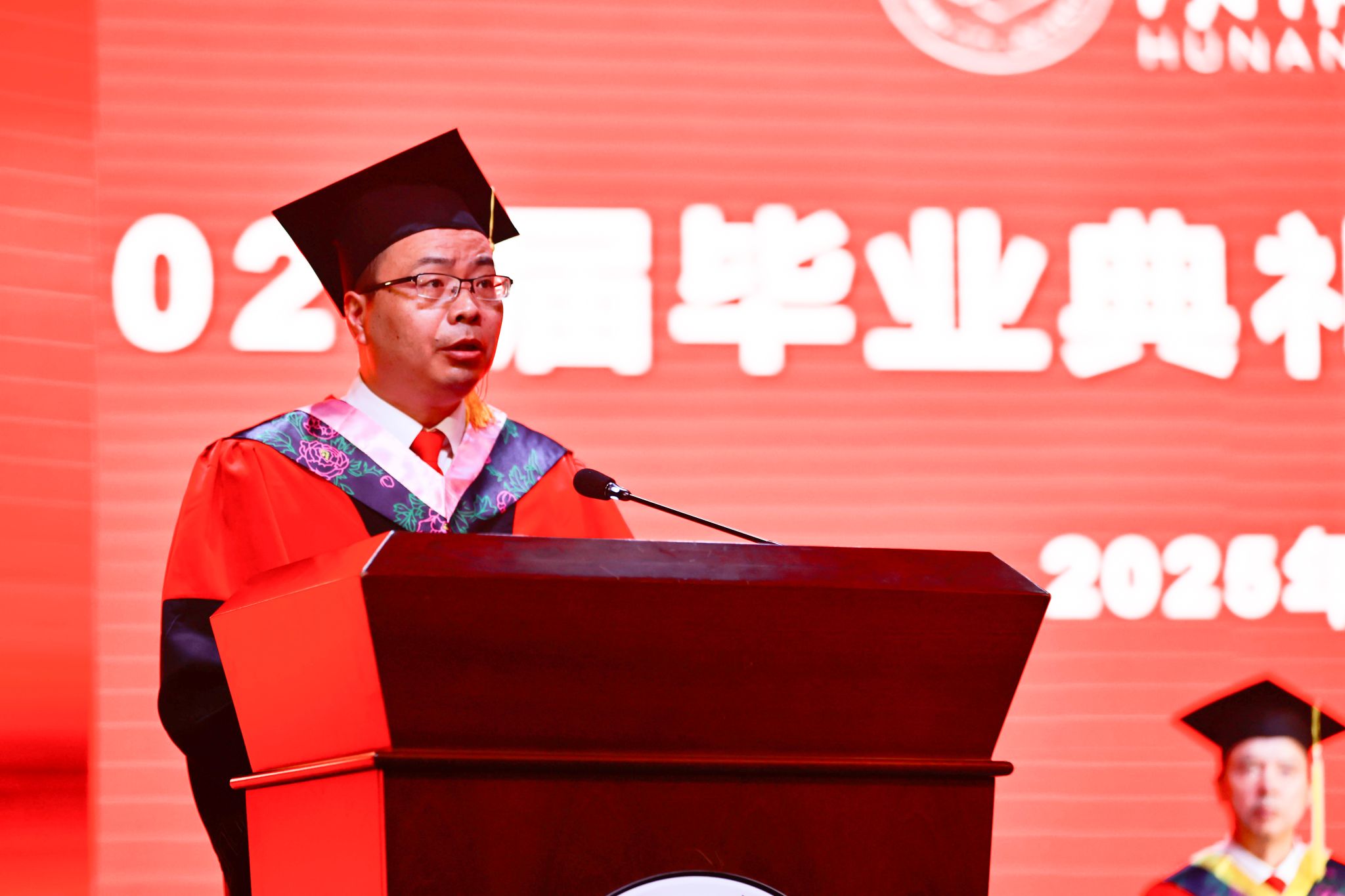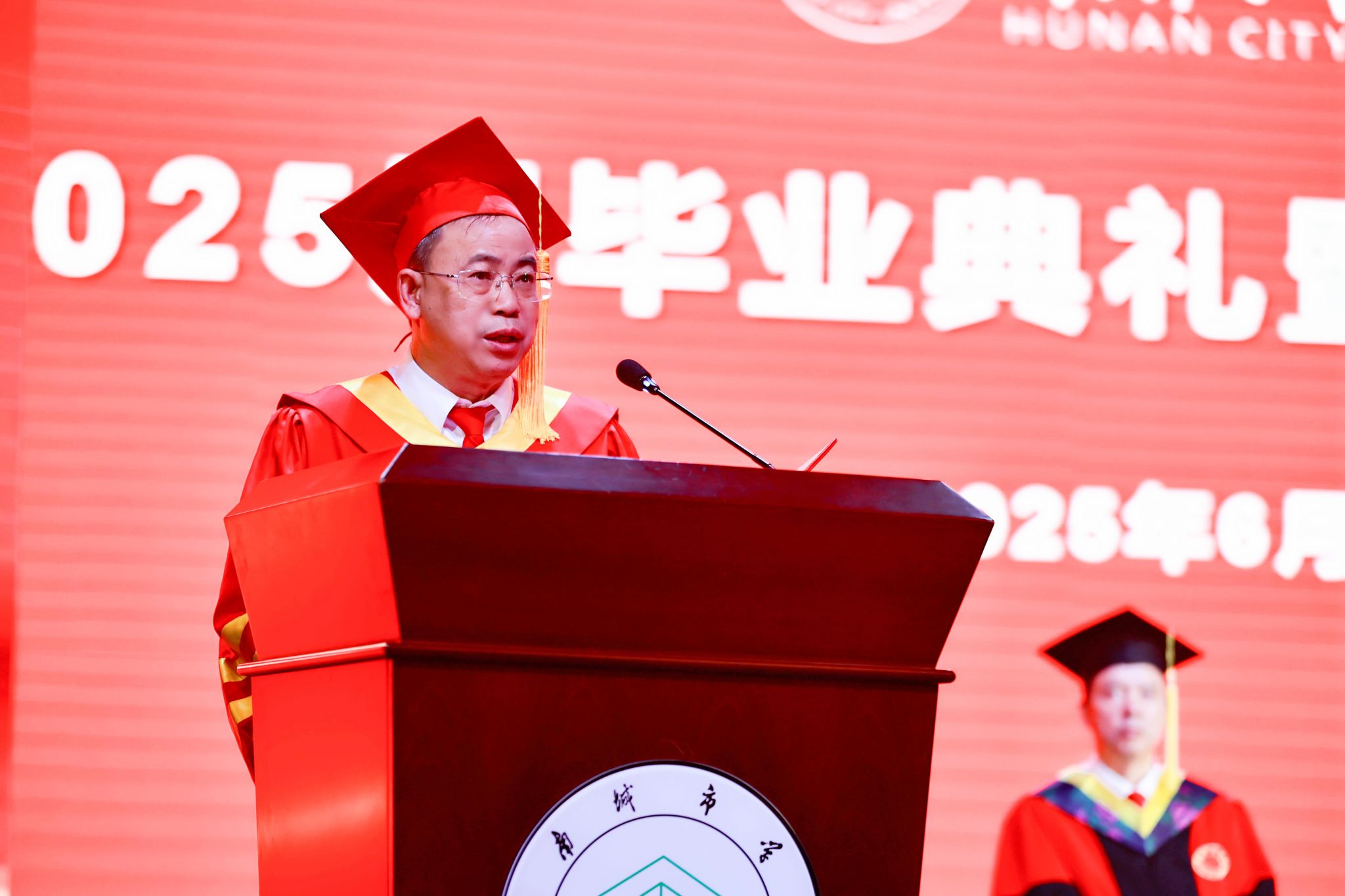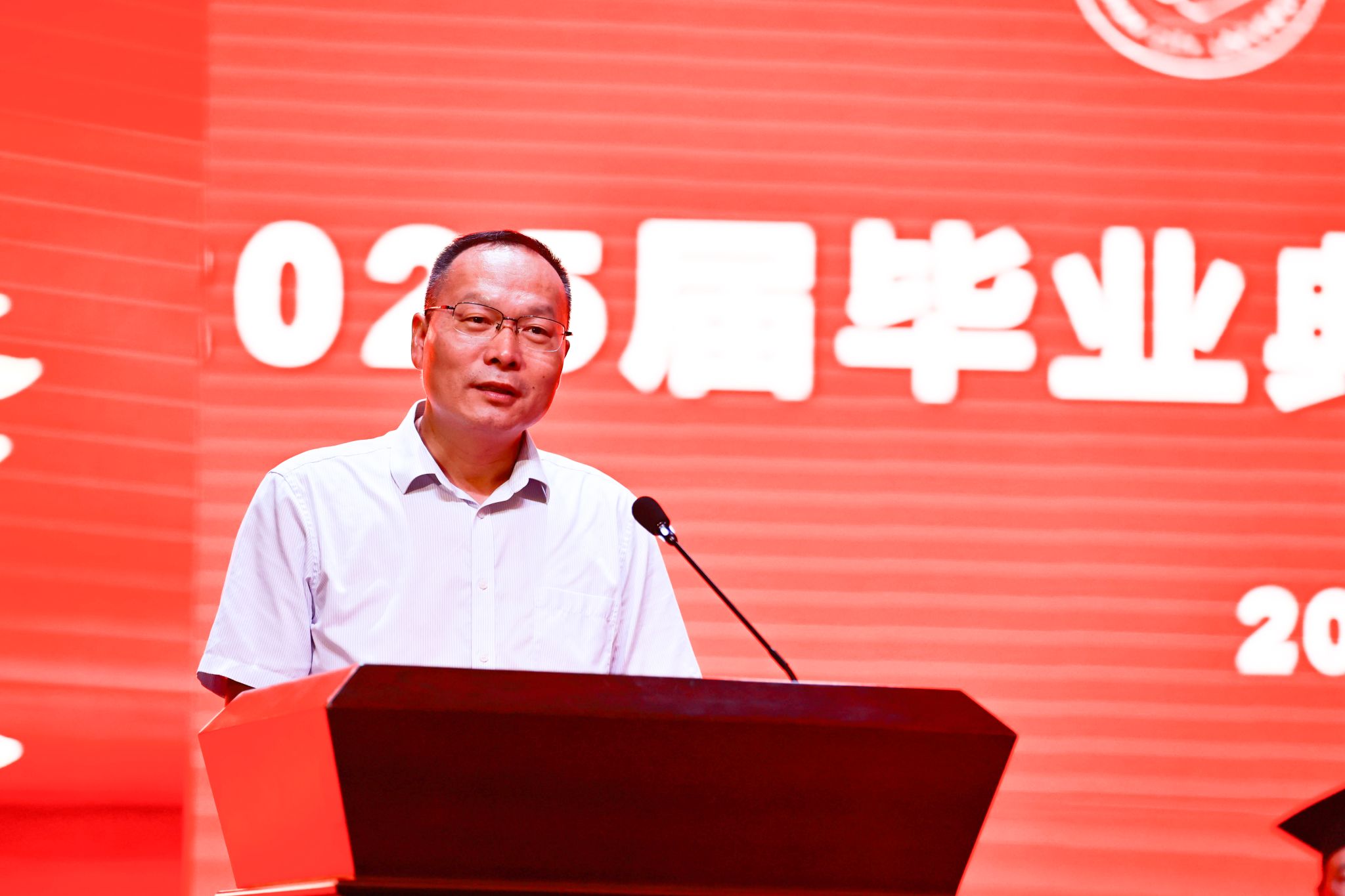 “同学们即将挥别母校,奔赴下一段人生旅程,面对未来,希望大家要深耕自己,勇于破圈,绽放最美青春。”校长何振代表学校为全体毕业生送上最真诚的祝福,他以“撬动未来从‘破圈’开始”为题,从四个方面对即将开启人生新征程的毕业生们提出了殷切期望:一是直面未来,要尽快摆脱“救济圈”。要做赚钱的能手,要做养家的巧手,要做立业的强手,毕业了要主动拒绝父母的救济,建好自己的粮草库,赚取人生的“第一桶金”;二是赢得未来,要主动跳出“舒适圈”。要放下架子学,要撸起袖子干,要扑下身子做,青年大学生身上不仅要有书香味、文艺范,还要有泥土气、烟火味,扎根基层一线,淬炼火热青春;三是掌握未来,要果敢摘下“金箍圈”。要相信命由己造,要践行德由己修,要坚持福由己求,幸福有时是做加法,有时又要做减法,但绝不会从天而降,更不能靠他人施舍,需要凭自身的努力与追求。四是享受未来,要清醒抵御“围猎圈”。不生“不法心”,不沾“不义财”,不踏“不归路”,同学们目前涉世未深、资历尚浅,不要盲目“开盒”,莫因一念之差坠入贪腐堕落深渊,要守住交往关,净化朋友圈。