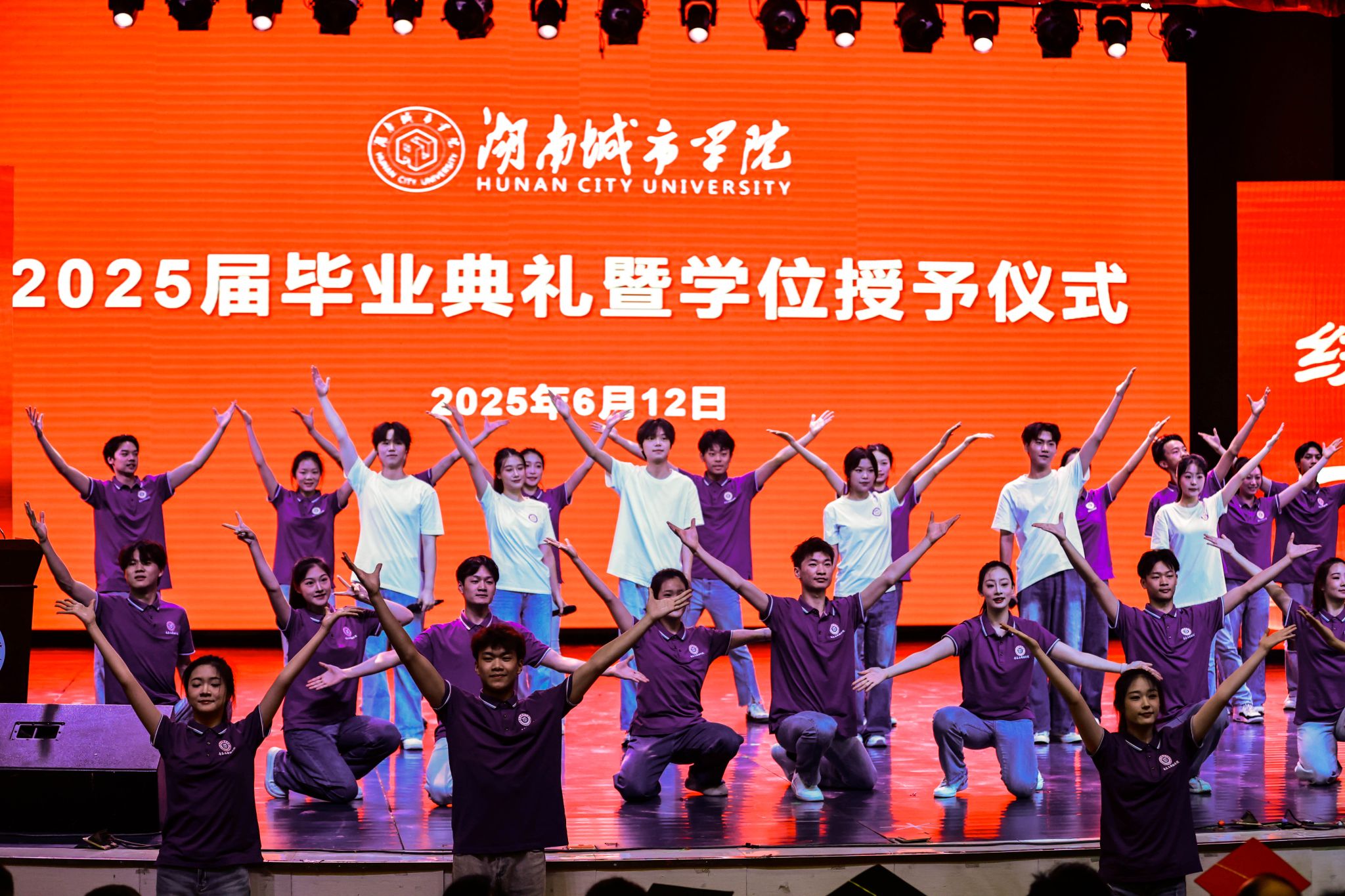 毕业典礼前,来自体育学院的舞龙舞狮队伍率先登场,伴随着铿锵鼓点,以灵动的狮影、飒爽的龙姿点燃全场,为这场盛大的告别式拉开热血序幕。来自音乐与舞蹈学院的学生献唱《我们都是追梦人》,以歌声共鸣青春脉搏,表达对毕业生们最美好的祝福。
