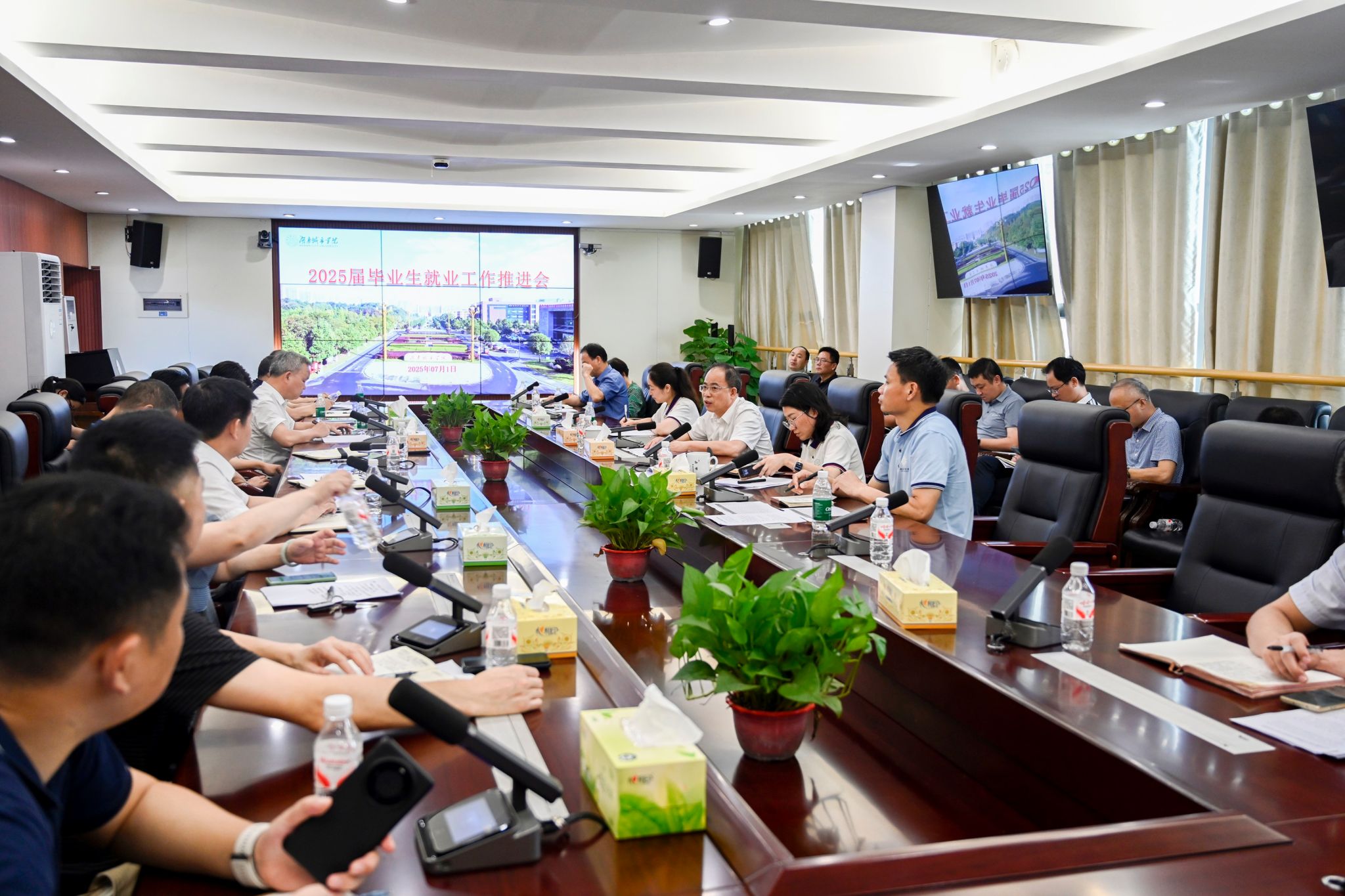 招生就业处处长胡拥军汇报了前期就业工作成效,并围绕2025届毕业生就业服务体系建设,从机制创新、资源整合、服务升级三个维度提出改革举措,为下一阶段工作确立清晰路径。各二级学院代表汇报就业工作推进情况,并对存在的问题及相关措施进行了探讨交流。
