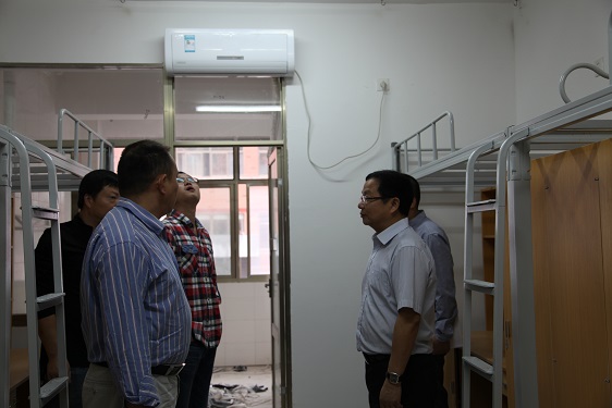 在朝阳校区教学楼和学生公寓,李建华详细询问、了解有关学院的开学准备情况,看望了学生公寓管理一线工作人员,仔细检查了教学楼和学生公寓的环境卫生、住宿准备等情况。