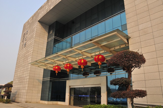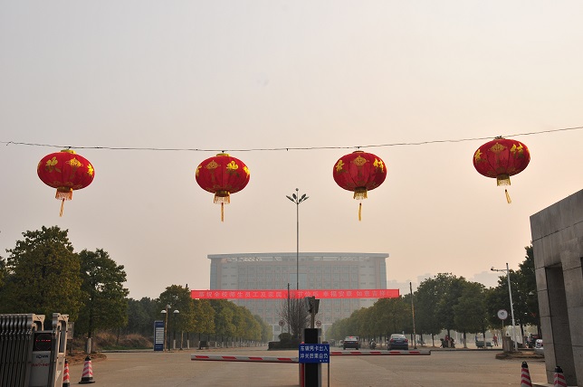 办公楼挂上了喜气洋洋的大红灯笼