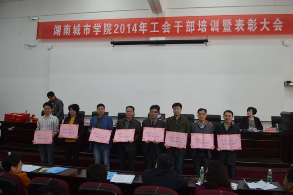 校工会女工委副主任石清丽宣读省、学校的各级表彰决定,其中获得表彰的有全国教科文卫体工会颁发的“模范职工之家” :博鱼买球正规(中国)有限公司官网工会、2013年度湖南省模范教职工之家:博鱼买球正规(中国)有限公司官网工会、省教育工会2013年度民主管理工作先进单位:博鱼买球正规(中国)有限公司官网工会、省教育工会2013年度直属基层工会模范教职工小家:外国语学院分工会等先进集体;省教育工会评选的“纪念毛泽东同志诞辰120周年教职工书画作品展”中,陈丽霞老师的国画《浩气长存》获一等奖、匡列辉老师的楷书条幅获二等奖、2013年度《湖南教工》优秀通讯员周敏。以及获得校工会表彰的有:美术与艺术设计学院分工会等8个单位为“工会工作目标管理先进单位”;通信与电子工程学院分工会为“先进教职工小家”;户外健身协会等2个协会为“工会工作优秀协会”;计划财务处等4个单位为“校务公开工作先进单位”;外国语学院分工会等4个单位为“工会工作活动特别奖”;何亮云等22人为“三育人”先进个人;王道静等177人为“工会积极分子”,与会领导分别颁发奖牌和证书。