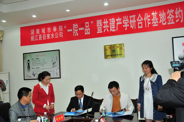 (本网讯)4月17日下午,我校与桃江市自来水公司“一院一品”暨共建产学研合作基地签约及挂牌仪式在桃江县住房与城乡建设局会议室举行。校长李建华、副校长刘辉煌,桃江县县长何军田、副县长刘武、县住房与城乡建设局、桃江县自来水公司、我校市政与测绘工程学院以及学校相关职能部门负责人出席了签约仪式。