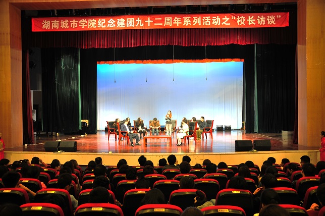 (本网讯) 4 月24 晚,我校纪念建团九十二周年系列活动之“校长访谈”在校本部音乐厅举行。校长李建华与学生代表面对面,聊治学谈人生。宣传部、学生工作部、团委、城管院、美艺院、信息院相关负责人与400多名学生现场见证访谈会。