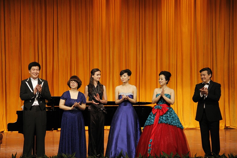 随后,武汉音乐学院李欣谕老师运用西班牙语、德语、意大利语演唱了《格拉纳达》、《黑雾》、《你不要哭泣》、《负心人》等外国经典的声乐艺术歌曲,曲风各异,声音圆润,令人动容。音乐会上,我校音乐学院声乐教师汤慧、孙波还分别为大家演唱了《江河万古流》、《请别忘了我》、《阿尔卑斯山脉的牧羊女》、《再别康桥》等名曲。晚会最后, 程方、李欣谕、汤慧、孙波四位老师共同唱响《我爱你,中国》,表达对祖国的美好祝愿,对歌唱艺术的不懈追求。