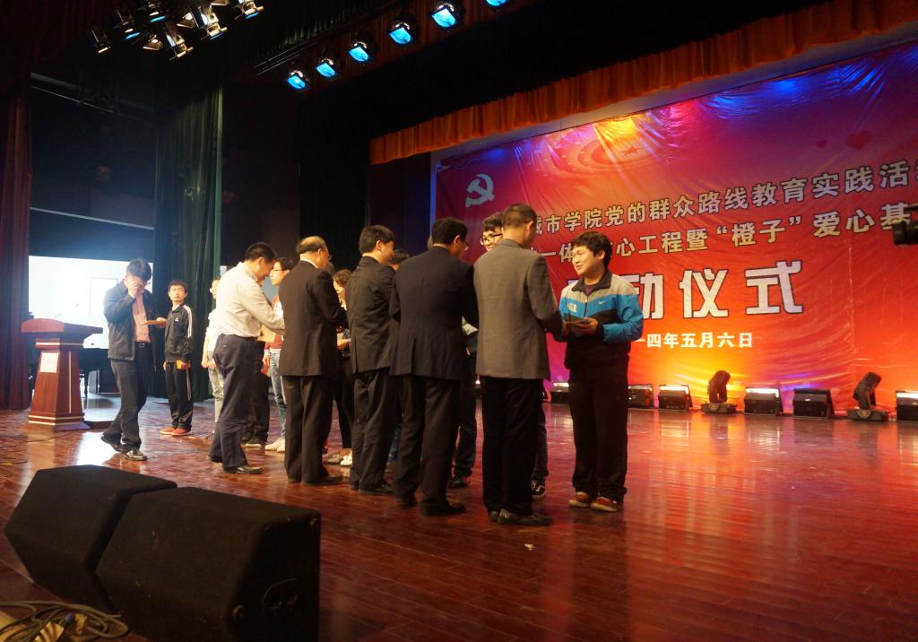党委书记赵运林讲话指出,启动“贴心工程”和“橙子基金”,并建立互帮互助的长效机制,对于关怀弱势群体,建设和谐城院,意义重大,影响深远。“贴心工程”是学校深入开展党的群众路线教育实践活动的核心举措,是增强教育实践活动实效的关键环节,是惠及全体师生的特色方案。为特困学生和身患疾病学生设立爱心救助基金,是关爱他人、乐于奉献的中华民族的传统美德和社会主义核心价值观的体现,让急需帮助的学生感受到和谐城院大家庭的温暖,是我们每个城院人的一份沉甸甸的责任。