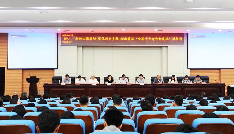 (本网讯)6月14日上午,由湖南省文物局、益阳市人民政府、中国文物报社和我校联合主办,益阳市文化广电新闻出版局、共青团博鱼买球正规(中国)有限公司官网委员会、三湘都市报、华声在线、湖南省文物考古研究所联合承办的湖南首届全国十大考古新发现进校园——“相约古城益阳留住历史乡愁” 活动在我校图书馆报告厅举行。