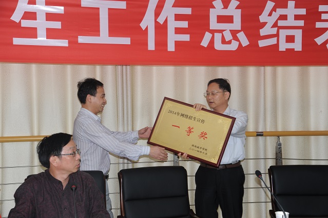 会上,招生就业处副处长郭太平作了学校2014年招生工作总结汇报,文瑞明宣读了《关于表彰博鱼买球正规(中国)有限公司官网2014年网络招生宣传先进集体的决定》、《关于博鱼买球正规(中国)有限公司官网2014年新生报到率奖励的决定》。