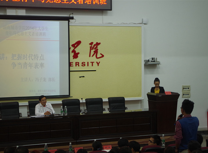 培训班在庄严的国歌声中开始。共青团湖南省委组织部部长冯子龙作“把握时代特点,争当青年表率”主题报告,他提出当代青年要清楚物质生活水平大幅度提高、经济体制的变轨与改革、互联网的兴起与发展、社会结构和阶层的调整与分化、经济全球化的发展以及民主法制成为社会发展的方向的六个特殊环境,把握当代青年受教育程度和文化水平大幅度提高、视野更加开阔、更加追求民主与权利、思想表达更自由、人源流动更加广泛与频繁以及压力越来越大的六个时代特征,并争当勤奋学习、修身养德、明辨是非、务实创新、无私奉献和遵纪守法六个青年表率。