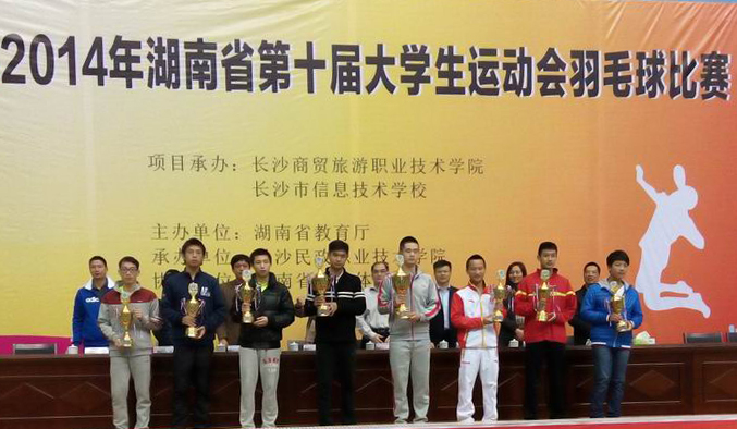 (本网讯)由湖南省教育厅主办,湖南省学生体育协会、湖南省高等学校教学指导委员会协办的省第十届大学生羽毛球比赛于1113日至18日在长沙商贸职业技术学院体育馆举行。比赛分三个组别,我校代表队参加学院组的比赛。