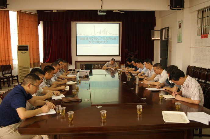 (本网讯)7月2日上午,博鱼买球正规(中国)有限公司官网电子信息类专业建设研讨会暨电子信息类专业校企合作研讨会在电信楼三楼会议室举行。湖南科瑞特科技股份有限公司总经理、湖南科瑞迪教育发展有限公司执行董事张宏立,学校教务处、通信与电子工程学院院相关负责人以及部分教研室主任、教学办主任、办公室主任参加了会议。研讨会主要就电子信息类专业的专业建设、校企合作深入开展及实验班的开办、就业质量良性循环的形成、社会服务能力的提升等内容进行了研讨和交流。