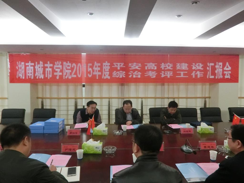 校长李建奇向考评组详细汇报了博鱼买球正规(中国)有限公司官网2015年度“平安高校”建设及综合治理工作,以及学校在维稳综治安全工作中的做法和措施。他在汇报中着重指出,2015年学校维稳综治安全工作主要以“平安高校”建设为载体,以创新工作方式为手段,专注做好维稳、消防、治安等基础工作。与此同时,学校还深入开展了突发事件处置、校园传销整顿、校园交通整治等重点工作,为学校创造良好的育人环境,也为教育事业的持续健康发展提供了保障。