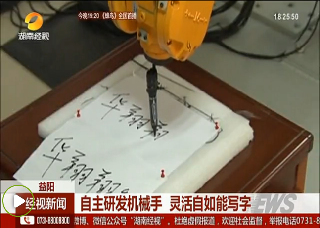 ,湖南经视新闻栏目以“自主研发机械手 灵活自如能写字”为题报道了我校与华翔翔能在校企合作方面取得的成果。这也是我校在启动《博鱼买球正规(中国)有限公司官网服务益阳行动纲要》以来,与益阳企业在自主知识产权合作方面取得的又一突出成果。