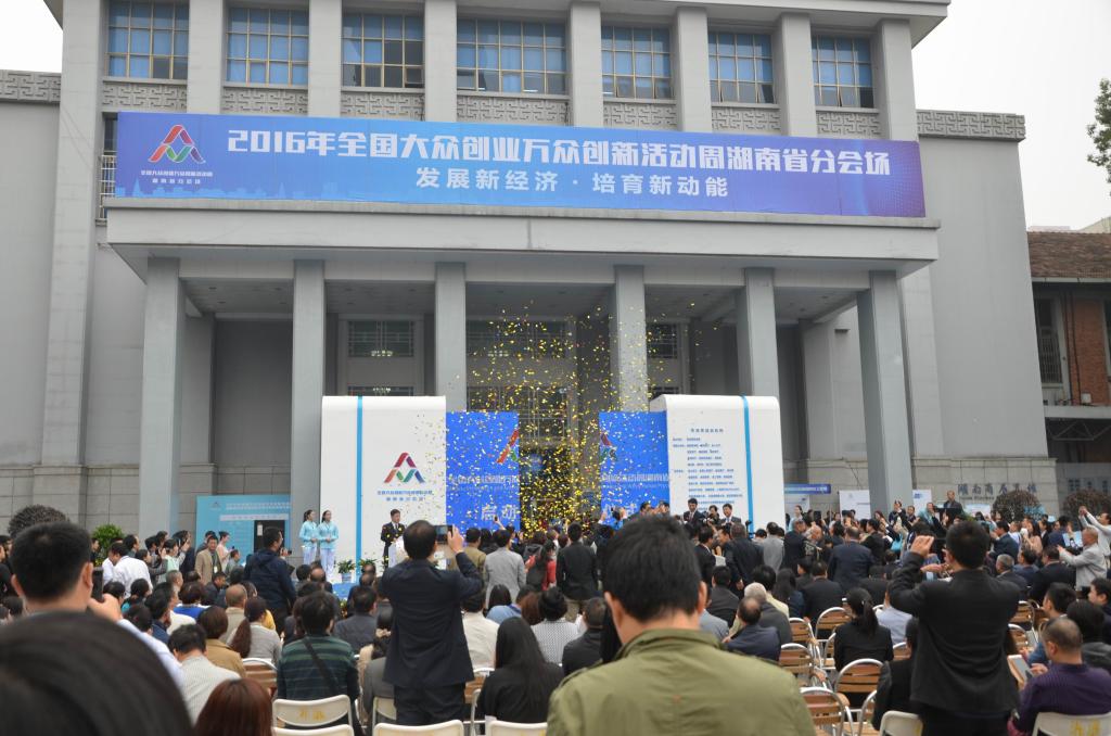 (本网讯)10月14日上午9点,2016年全国大众创业万众创新活动周湖南省分会场在湖南省展览馆举行启动仪式,湖南省委常委常务副省长陈向群出席启动仪式。作为活动周主要内容之一的“双创”成果展同时开幕,我校送展的“博鱼买球正规(中国)有限公司官网众创空间”和“博鱼买球正规(中国)有限公司官网多自由度智能机械手”两个项目在成果展上展出。