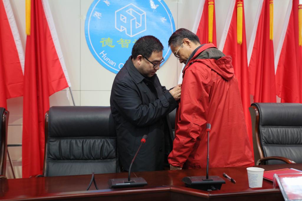 讲座之前,李建奇为郑炘教授授聘书,聘任郑炘教授为我校客座教授。郑卫民为郑炘教授佩戴了博鱼买球正规(中国)有限公司官网校徽。郑炘表示非常荣幸成为博鱼买球正规(中国)有限公司官网的一员,并将为学校的发展贡献自己的一份力量。
