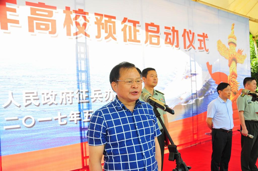 (本网讯)5月16日下午,益阳市2017年高校预征启动仪式在我校田径场隆重举行。益阳市征兵办公室主任、军分区参谋长盛全大校,市政府副秘书长杨光辉,我校副校长谭献良,湖南工艺美术职业学院副校长汪泳波,益阳医学高等专科学校副校长范珍明,益阳职业技术学院副校长潘访华,以及资阳区、赫山区人武部、各高校领导同志、老师、1000多名各高校学生代表参加了启动仪式。启动仪式由赫山区人武部部长张永发主持。