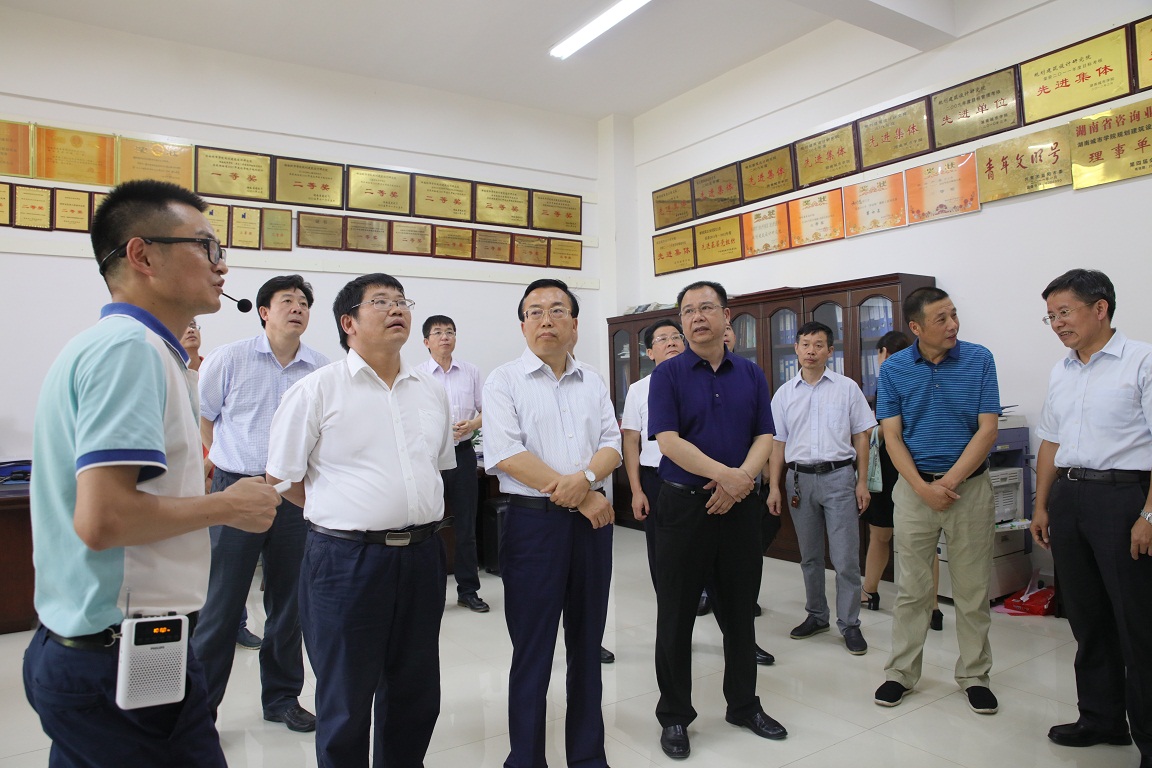 随后,向力力一行参观了拥有六甲资质、年产值过亿的学校规划建筑设计研究院,观看了设计院综合办荣誉墙,详细了解了设计院综合实力和面向中小城镇服务的特征,饶有兴趣听取了智慧城市创新技术研究中心自主研发的无人机、无人船研发应用情况介绍。向力力充分肯定学校规划确定的办学定位、发展目标、改革发展举措和取得的成绩。他指出,博鱼买球正规(中国)有限公司官网在城建规划方面有着悠久的办学历史,人才培养和产学研用聚焦中小城镇,对接行业产业契合度高,接地气,有特色,受到社会的广泛欢迎,希望学校抢抓创建“双一流”的良好契机,加大应用型人才培养力度,做好三件大事,进一步做强自身的办学特色和品牌,推进产教深度融合,在助推新型城镇化和城乡一体化,服务于地方经济社会发展中发挥更大优势,做出更大贡献。他表示积极支持并共同努力推进益阳医专并入博鱼买球正规(中国)有限公司官网工作。
