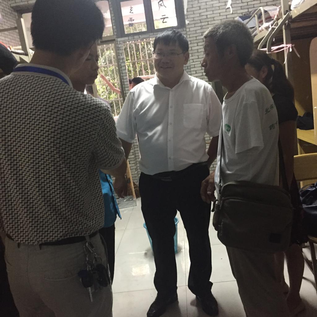 之后,罗成翼一行深入定向师范学生宿舍,实地察看了学生公寓16栋、13栋部分寝室,了解中职师范生的住宿安排与生活情况。罗成翼真切地询问了部分师范生户籍所在地、生活费用、家庭经济状况及对新的学习生活环境的感受等,勉励他们要尽快适应学校生活,从学习、生活、纪律、道德等方面严格要求自我,切勿沉迷于游戏。同时,他还与贫困生及其家长亲切交谈,结合自己年少时的亲身体验鼓励该生树立良好心态、积极参加活动,好好读书回报父母,并要求学生工作处、相关辅导员多多关心与帮助这位同学。