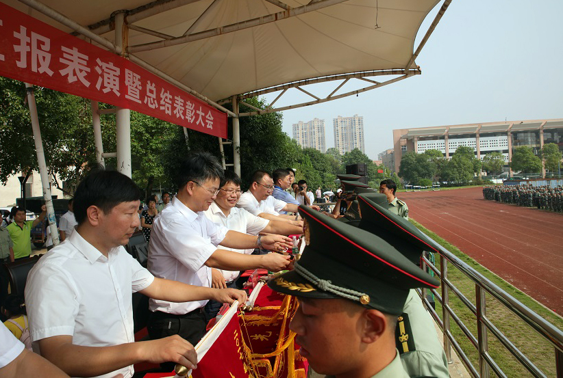 汇报表演结束后,副校长谭献良作了军训总结报告。他对4500余名新生在为期12天的军训中所表现出的顽强的毅力和优良作风给予了高度评价。他希望大家继续保持、巩固和发扬在军训中的好思想、好作风、好品质,在新的起点上有新的理想、新的作为,发奋学习,努力做一名优秀的大学生;希望大家继续巩固和发扬集体主义精神,互相帮助、互相关心,珍惜大学时光,秉承“品学兼修,知行统一”的校训,为实现“梦想”加油。