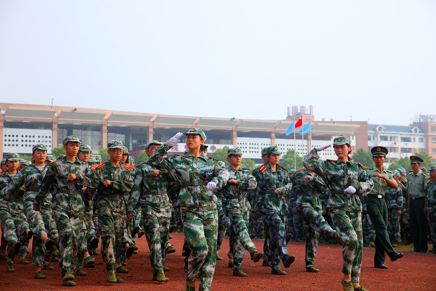 伴随着振奋人心的《分列式进行曲》,由各参训连队组成的方队,迈着矫健而整齐的步伐,昂首阔步的依次通过主席台,接受学校领导和广大师生的检阅。