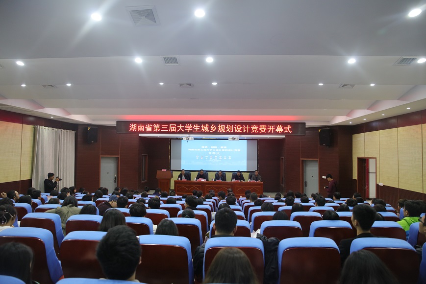 14日上午8时,比赛开幕式在建筑规划楼一楼报告厅举行。省教育厅副厅长葛建中,校领导罗成翼、李建奇、汤放华、雷存喜,中国城市规划学会理事、全国高校城乡规划专业指导委员会委员徐建刚,省教育厅高教处副处长张平,湖南省城乡规划学会秘书长、湖南省建筑设计院总规划师李彩林,湖南省城乡规划学会副秘书长曹燕,以及各参赛高校代表队参加会议。开幕式由李建奇主持。