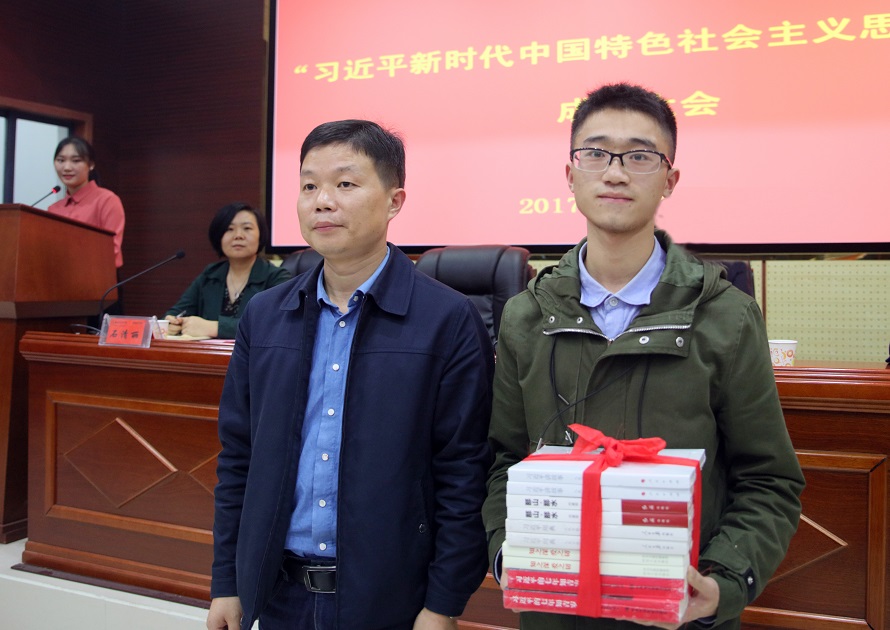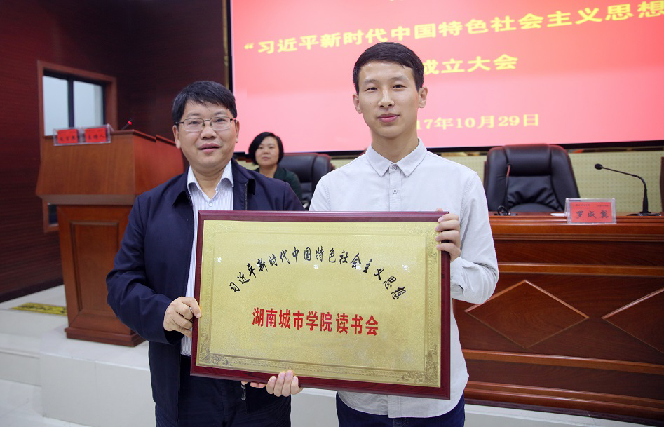 会上,团委书记石清丽宣读了读书会指导老师及机构成员名单。读书会会长杨镜玉同学代表读书会全体会员发言。他结合自身感受和学习实际,表达了城院学子自觉用习近平新时代中国特色社会主义思想武装头脑,勇于担当使命,争做青年先锋和社会主义事业接班人的坚定信心和决心。宣传部部长李斌向读书会赠送了《习近平的七年知青岁月》、《习近平用典》、《习近平讲故事》等系列图书。