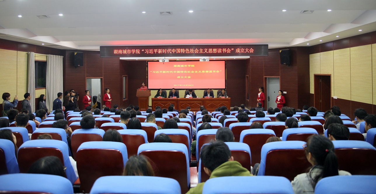 (本网讯)10月29日晚,由学生自主发起并成立的博鱼买球正规(中国)有限公司官网“习近平新时代中国特色社会主义思想读书会”成立大会在建筑规划楼报告厅举行。党委书记罗成翼、副校长谭献良,宣传部、学工部、团委、马克思主义学院、各二级学院学工部门负责人以及读书会首届会员出席大会。