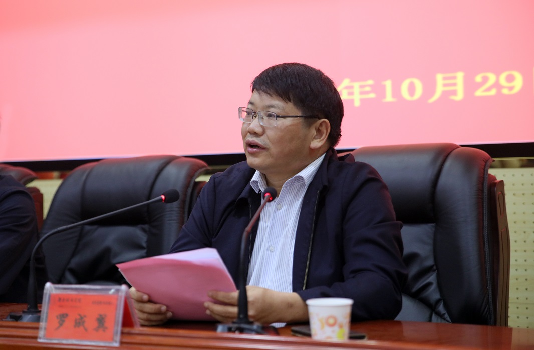 罗成翼强调,要用习近平新时代中国特色社会主义思想牢牢武装头脑,做到“五个结合”:要把学习习近平新时代中国特色社会主义思想同学习马克思主义基本原理结合起来;与回顾党的十八大以来我们国家发生历史性变革的生动实践结合起来;与把握十九大提出的我们未来一个时期的战略部署、发展方略、总目标、实现路径和要达成的具体要求结合起来;与深刻理解我们党进行自身革命新的伟大工程结合起来;与推进学校改革发展结合起来,以理论指导自身的工作、学习,学用结合,立足岗位,推进教风学风建设,推进学校改革发展,用实际行动来践行习近平新时代中国特色社会主义思想。