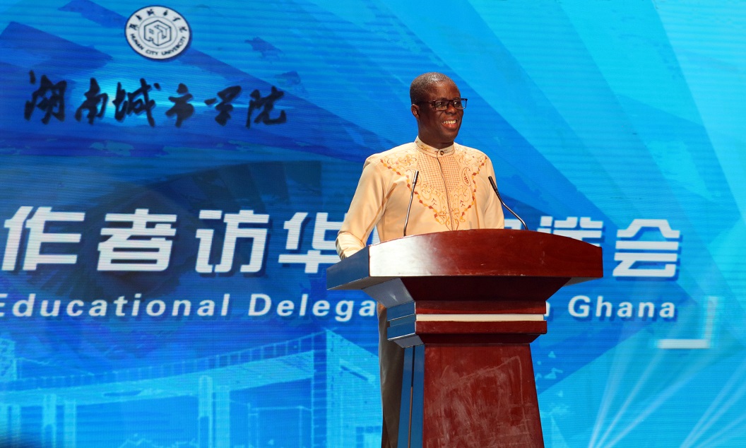 加纳海岸角大学校长乔瑟夫.安皮亚代表访华团感谢学校13天来的热情招待。他高度评价了学校的办学理念和办学水平,对两校的合作交流,特别是孔子学院在加纳取得的成绩给予了充分肯定。他希望两校能够进一步加强合作,在教育领域为中加友好关系添砖加瓦。