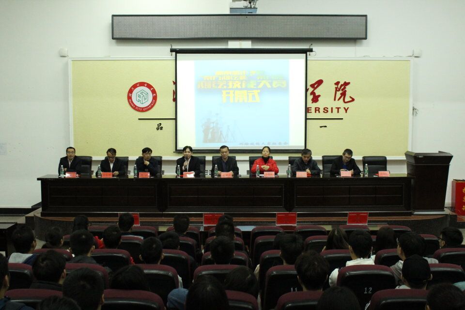 (本网讯)为加强实践教学、提高学生的测绘技能水平并为参加湖南省测绘技能大赛选拔选手,11月12日,学校举行了第六届测绘技能大赛暨湖南省测绘技能大赛选拔赛。副校长雷存喜,教务处、学生处以及相关学院负责人出席比赛开闭幕式。