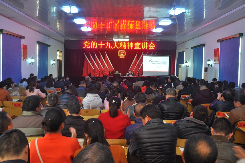 随后,在河坝镇机关礼堂,副院长何军新教授以《牢牢把握党的十九大新主题,谱写新时代乡村发展新篇章》为题进行了党的十九大精神宣讲。大通湖区委区管委会、河坝镇机关、村(社区)党员和群众代表200余人听取了讲座。