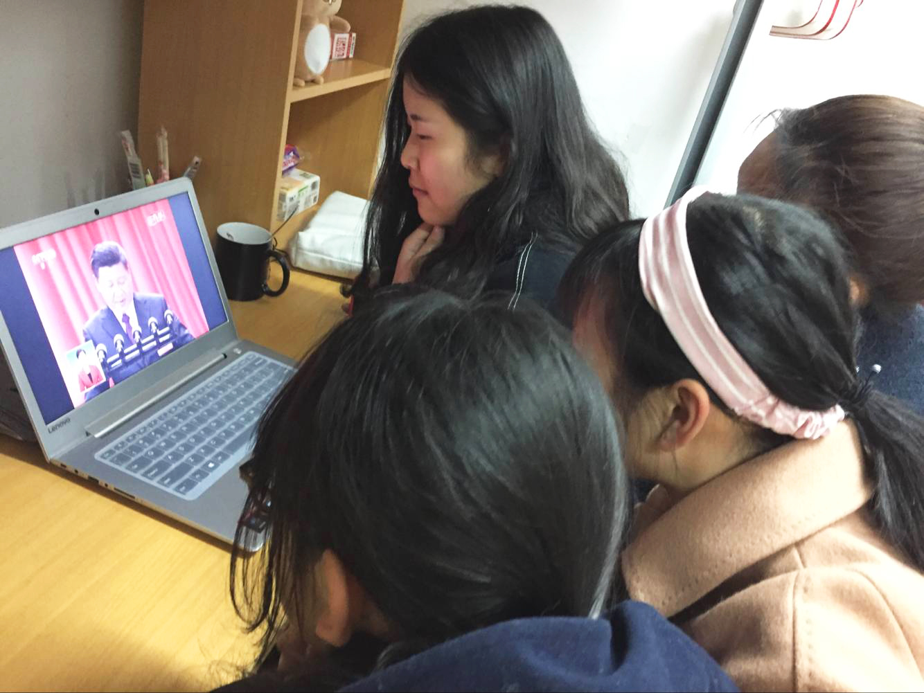 学生在寝室收看“两会”闭幕式