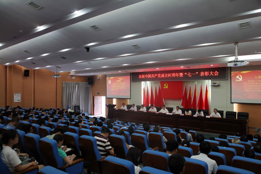 (本网讯)为进一步选树典型、弘扬正能量,激励全校基层党组织和广大党员充分发挥战斗堡垒作用和先锋模范作用,6月28日下午,博鱼买球正规(中国)有限公司官网庆祝中国共产党成立97周年暨“七一”表彰大会在逸夫图书馆报告厅隆重举行,在家的校领导、表彰对象、副处级以上党员领导干部、党支部书记、全体辅导员参加会议。会议由党委副书记、校长李建奇主持。