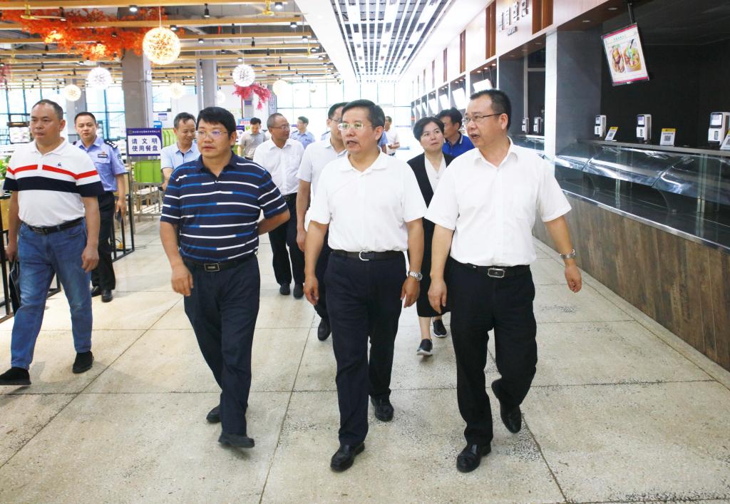 瞿海一行先后检查了我校第二食堂、学生宿舍,详细询问了学校安全保卫制度制定、完善情况以及人防、物防、技防措施落实情况。期间,罗成翼、李建奇简要介绍了我校开学工作情况。新学期我校迎新工作已准备就绪,所有学生宿舍均已安装了空调,校园环境整洁、舒适。食堂饭菜质量与价格基本稳定,为师生提供了优质的餐饮服务,确保了新学期师生饮食安全。