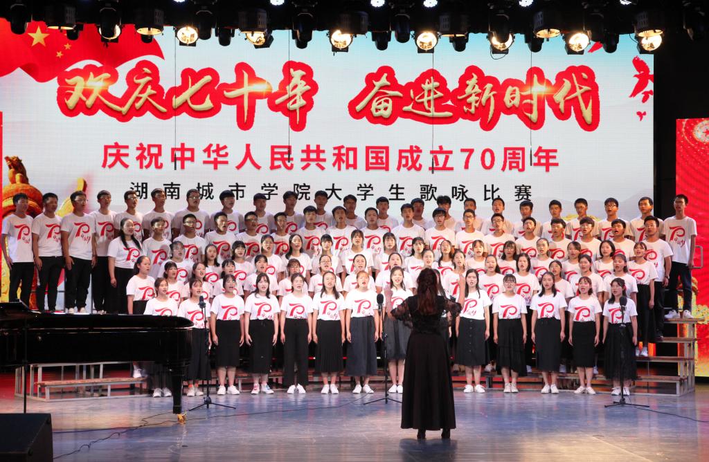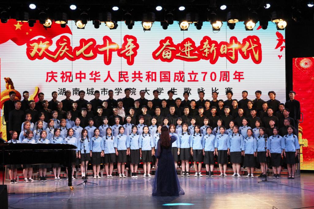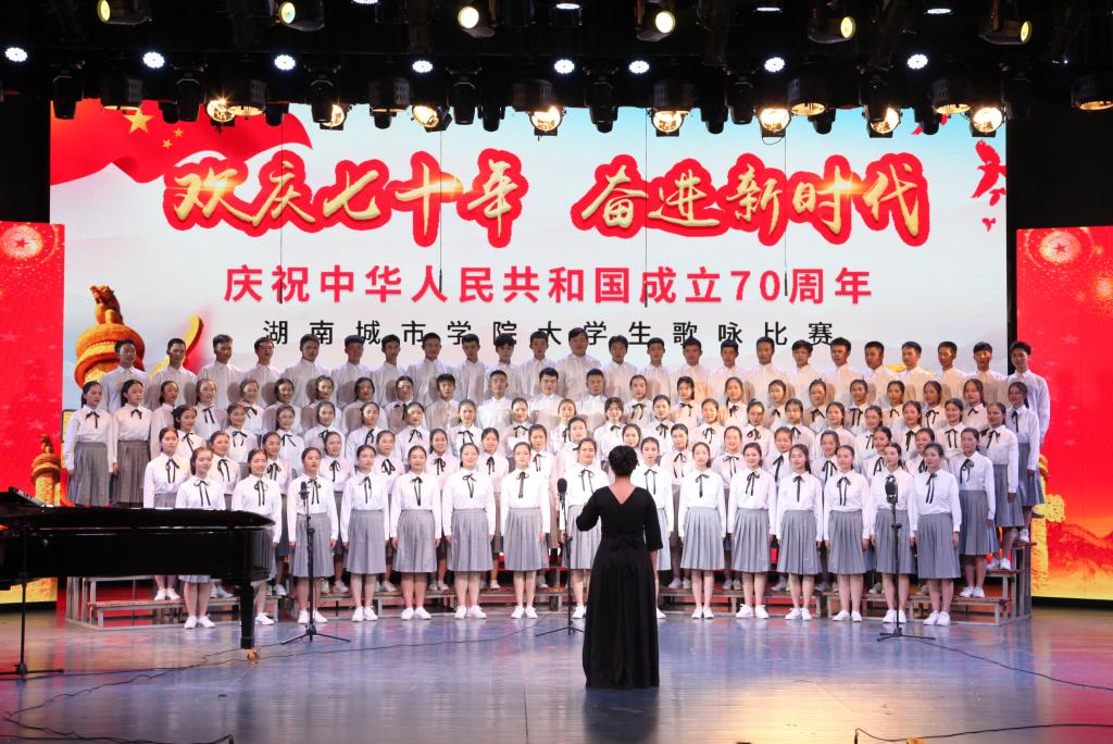 “青青会龙山下,悠悠资水之滨,八百里洞庭潮涌,伴着我们青春的足音……”艺术学院合唱队齐唱校歌拉开比赛序幕,熟悉的旋律瞬间激发了同学们爱校同心的城院情怀。随后,《保卫黄河》《爱我中华》《我爱你中国》等一曲曲动人的红色经典竞相登场,唱出了城院青年对党、对祖国的深厚感情。《南泥湾追寻在希望的田野上》《在灿烂的阳光下》《走向复兴》等一首首脍炙人口歌曲讴歌了伟大祖国带领我们奋进新时代的丰功伟绩。学校澄音合唱团带来特别表演《我的祖国》,唱响了新中国七十载的奋发图强,歌颂这片土地七十年的沧桑巨变。每一支参赛团队都以饱满的热情和嘹亮的歌声表达着对祖国的忠诚热爱现场观众心潮澎湃掌声经久不息最后,全场一起挥舞国旗齐唱《我和我的祖国》