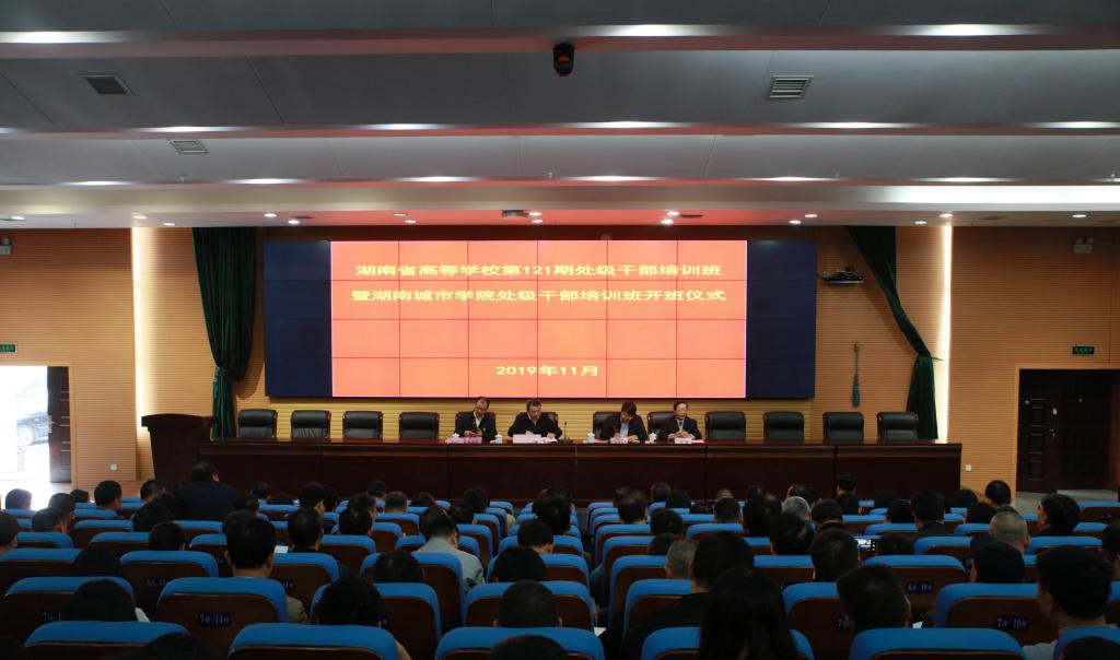 (本网讯)2019年11月7日下午,湖南省高等学校第121期处级干部培训班暨博鱼买球正规(中国)有限公司官网处级干部培训班开班仪式在我校图书馆报告厅举行。本次培训班由省委教育工委党校主办,博鱼买球正规(中国)有限公司官网承办。省教育厅党组成员、省委教育工委副书记、省委教育工委党校校长王建华,省委教育工委党校常务副校长刘国华,在家的校领导出席,第121期处级干部培训班参训学员、二级党组织书记、副书记、基层党支部书记、辅导员以及党务部门全体人员参加。开班仪式由党委副书记、校长李建奇主持。