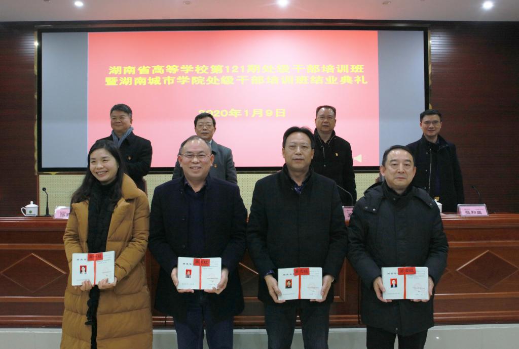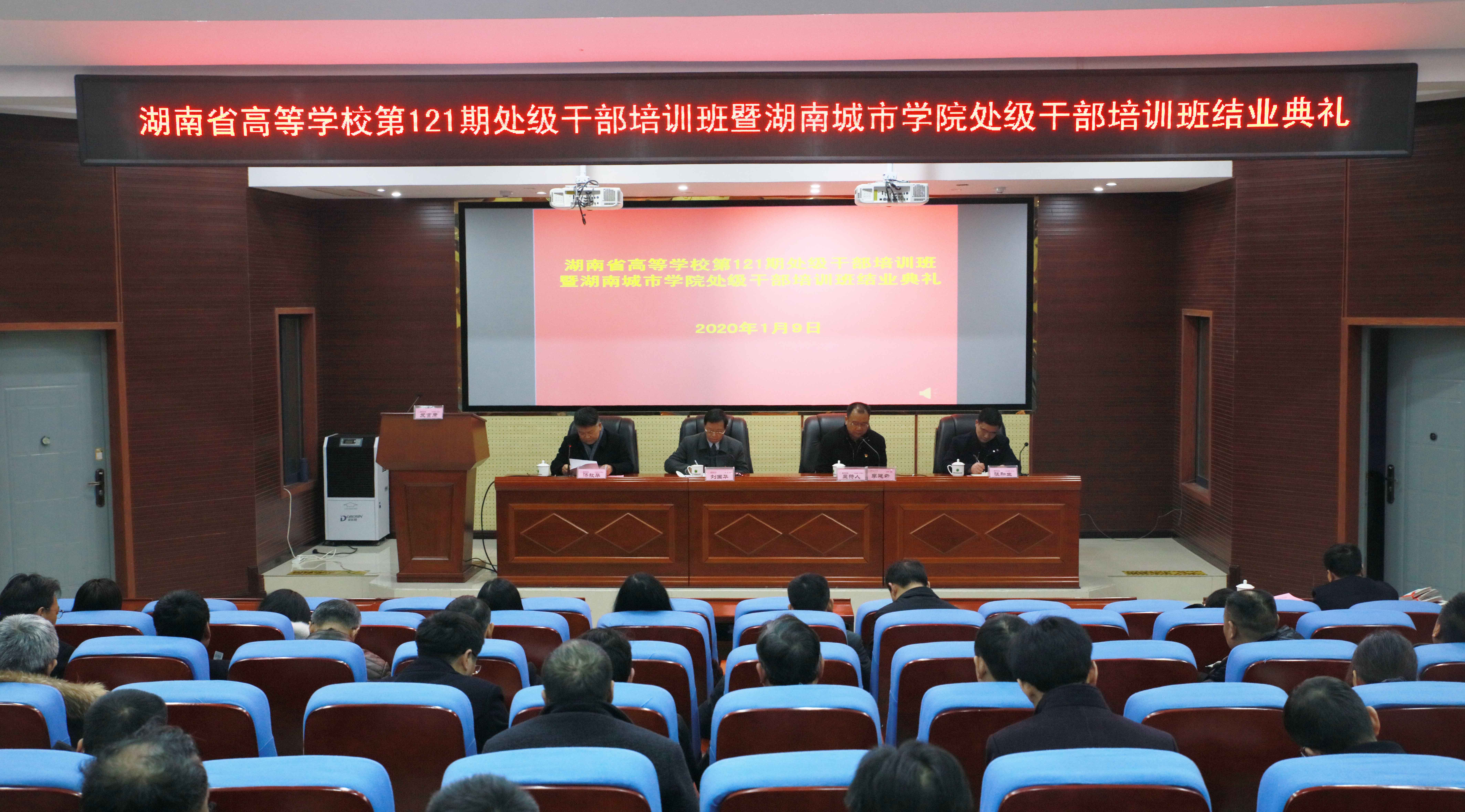 (本网讯)2019年1月9日,湖南省高等学校第121期处级干部培训班暨博鱼买球正规(中国)有限公司官网处级干部培训班结业典礼在我校图书馆报告厅举行。湖南省高校干部培训中心主任、书记,省委教育工委党校常务副校长刘国华,省高校干部培训中心副主任张和生,党委副书记汤放华,党委委员、组织部长袁志成出席。结业典礼由党委副书记、校长李建奇主持。
