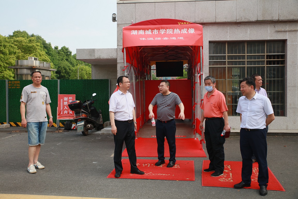 本网讯 2020年5月4日下午,我校党委副书记、校长李建奇带队检查2020年春季学期开学准备工作。副校长郑卫民、雷存喜、谭献良,党政办、教务处、学生工作部、保卫处、基建与后勤管理处相关负责人陪同检查。