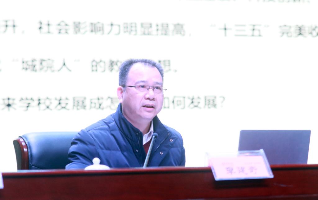 罗成翼强调,要实施一流人才培养提质工程,努力在区域发展新格局中提供人才支撑。分类推进高质量专业群建设,持续推进高水平一流课程建设,深化“五育并举”的人才培养方案改革,推进建设“现代产业学院+”的产教融合改革;要实施人才队伍优化提升工程,努力在一流师资队伍建设上打造集聚高地。扎实推进增量“靶向引才”计划、存量“优化提能”计划和团队“培优做强”计划;要实施创新服务特色彰显工程,努力在服务“三高四新”战略上展现历史担当。推动学科分类发展,推进“三高四智”建设,加大校地合作力度,建设校地融合发展共同体,提升服务地方能力和产教融合能力;要实施“三全育人”体系构建工程,努力在做实做优立德树人上彰显特色优势。切实构建“十大育人”体系,大力推进思政课程创优计划和课程思政走心计划;要实施内部治理效能提高工程,努力在治理体系能力现代化上争做改革先锋。深化机构编制改革、教育评价改革和大学制度改革。稳步提高教职工待遇,实现在职职工收入逐年增加,打造“富裕城院”。实施师生体质提升工程,大力推进体育活动,打造“健康城院”。实施校园文化景观提质和亮化提质项目,打造“美丽城院”。开展精神文明创建,深化文明标兵校园建设,打造“文化城院”。激发师生爱校同心、兴校强校情怀,打造“和谐城院”。
