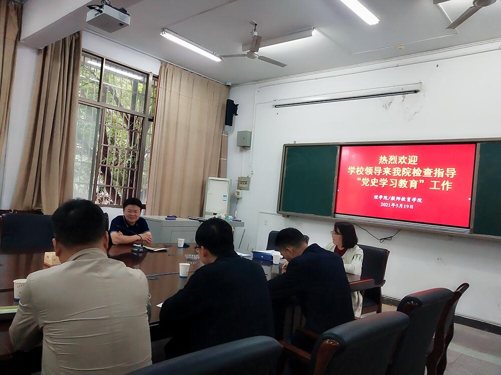 校长汤放华在理学院/教师教育学院检查党史学习教育开展情况。