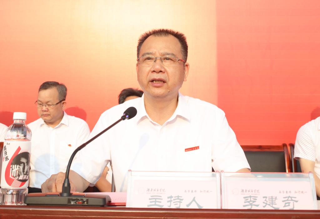 在家的校领导出席开学典礼,相关职能部门负责人,各二级学院相关领导,2021级新生辅导员、班主任以及教师代表参加开学典礼。开学典礼由党委书记李建奇主持。