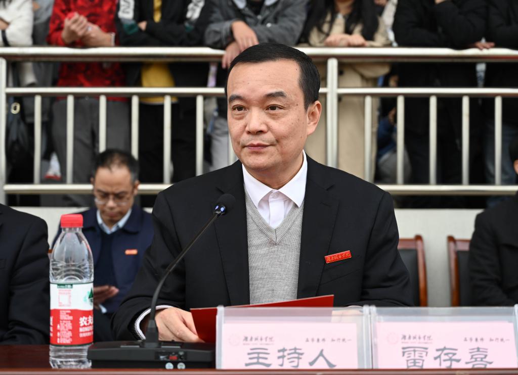 校长汤放华致开幕词,他沿用毛泽东同志在《体育之研究》中提出的“文明其精神、野蛮其体魄”,鼓励全体同学积极投身体育锻炼。他指出,要站在为党育人、为国育才的战略高度,树立健康第一的教育理念,让同学们在体育锻炼中享受乐趣、增强体质、健全人格、锤炼意志,成长成才。希望参加本次运动会的全体运动员要遵守规则、公平竞赛、团结互助,弘扬拼搏精神,展现当代青年大学生的良好风貌;希望全体教练员、裁判员要恪尽职守,确保比赛公平公正和运动会的圆满精彩;希望全体工作人员认真履职,为比赛提供热情、高效、安全、优质的服务;希望全体师生能够以此次运动会为契机,爱上运动,养成体育锻炼的良好习惯,练就一副健康强壮的体魄,涵养团结合作、公平竞争、顽强拼搏的体育精神,立志为党和国家健康工作五十年!