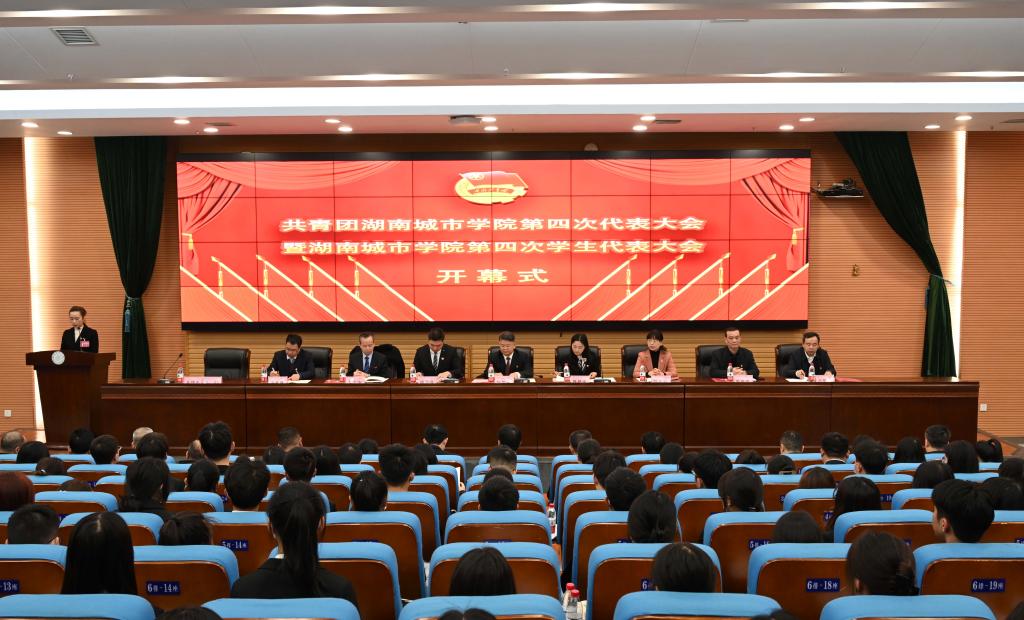 本网讯(通讯员 方玮祺 龙奕成)2021年12月12日,共青团博鱼买球正规(中国)有限公司官网第四次代表大会、博鱼买球正规(中国)有限公司官网第四次学生代表大会在学校图书馆报告厅召开。党委副书记、校长汤放华,党委副书记何旭娟,副校长夏宏宇,党委委员、副校长雷存喜、袁志成,党委委员、组织部部长吕贤军,共青团湖南省委学校部部长陈艳英,共青团益阳市委书记谭罗垠出席,相关职能部门负责人以及各二级学院分管学生工作的党委(党总支)副书记和团委书记,246名团员代表,227名学生代表参加开幕式。