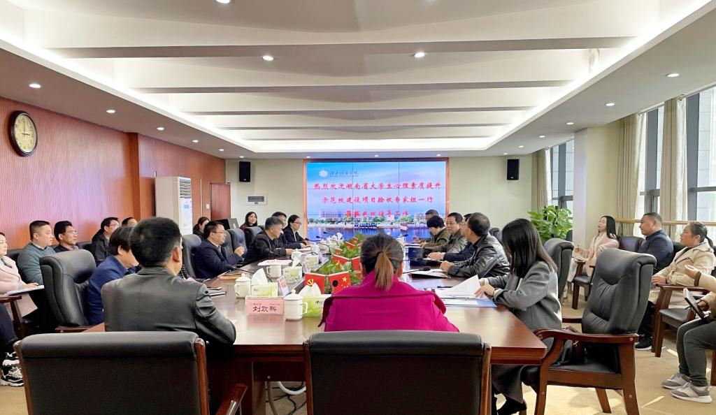 本网讯(通讯员 陈文琴)2021年12月9日,省教育厅“湖南省大学生心理素质提升示范校建设项目”验收专家小组一行6人莅临我校现场验收。校长汤放华热情接待了专家组一行,副校长袁志成、部分职能处室负责人、各二级学院副书记、心理健康教育中心全体教师和部分辅导员代表参加汇报会和反馈会。