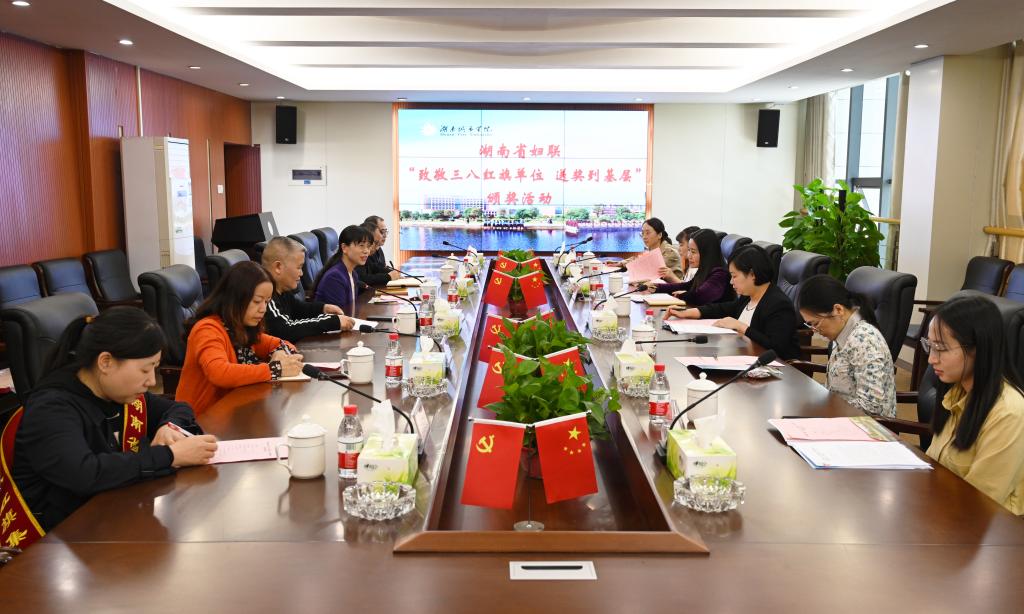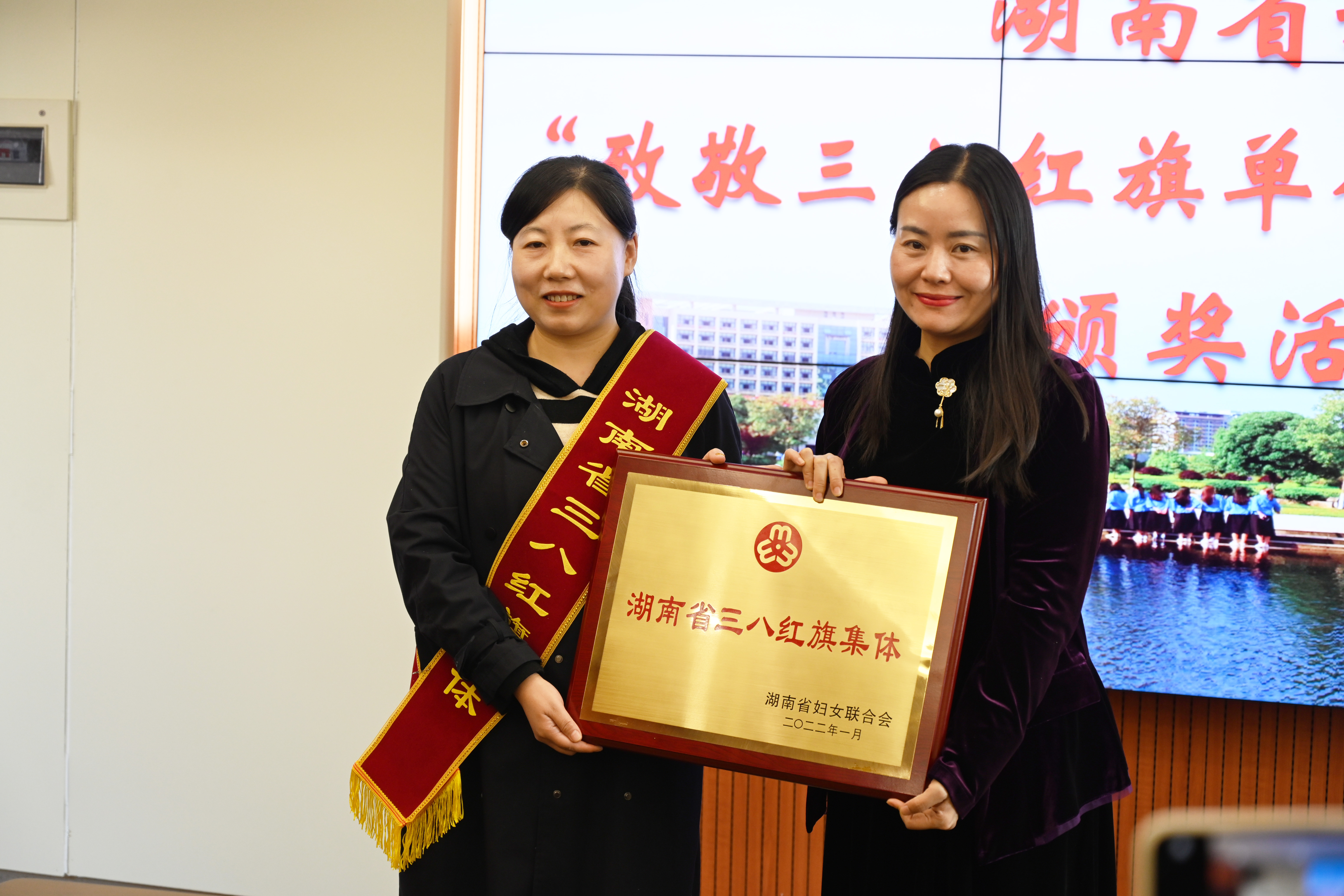 本网讯(记者/文彦波 通讯员/王锋娟)11月2日下午,省妇联副主席周荣一行来到博鱼买球正规(中国)有限公司官网开展“致敬三八红旗手·送奖到基层”活动,为荣获湖南省“三八红旗集体”荣誉的马克思主义基本原理概论教研室颁奖。学校党委副书记何旭娟,校工会、马克思主义学院等单位相关负责人出席授奖仪式。
