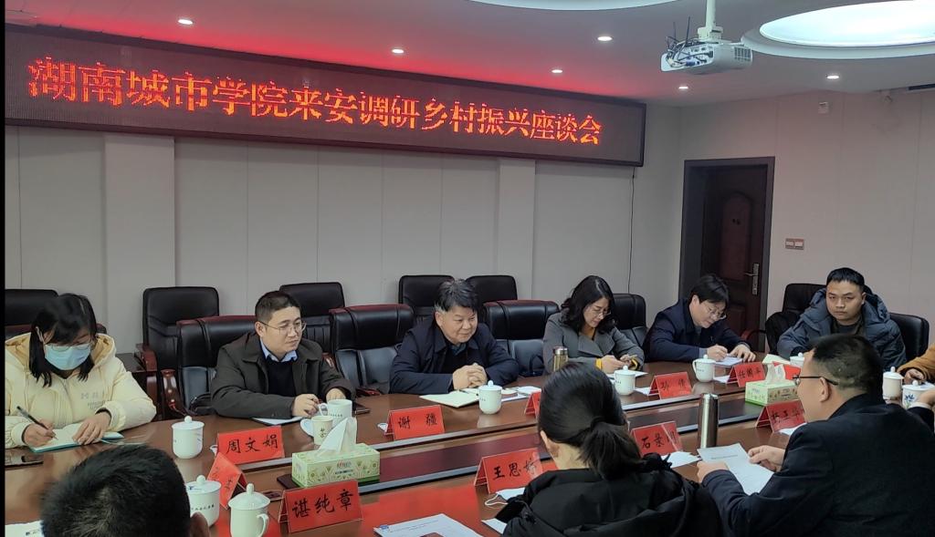 本网讯(通讯员 孔军)2月6日,学校党委书记汤放华率乡村振兴课题组相关成员赴安化县就切实做好“五大振兴”工作进行专题调研。安化县委书记石录明,县委常委、宣传部长王思婷,副县长杨正华以及乡村振兴局等部门负责人出席座谈会。