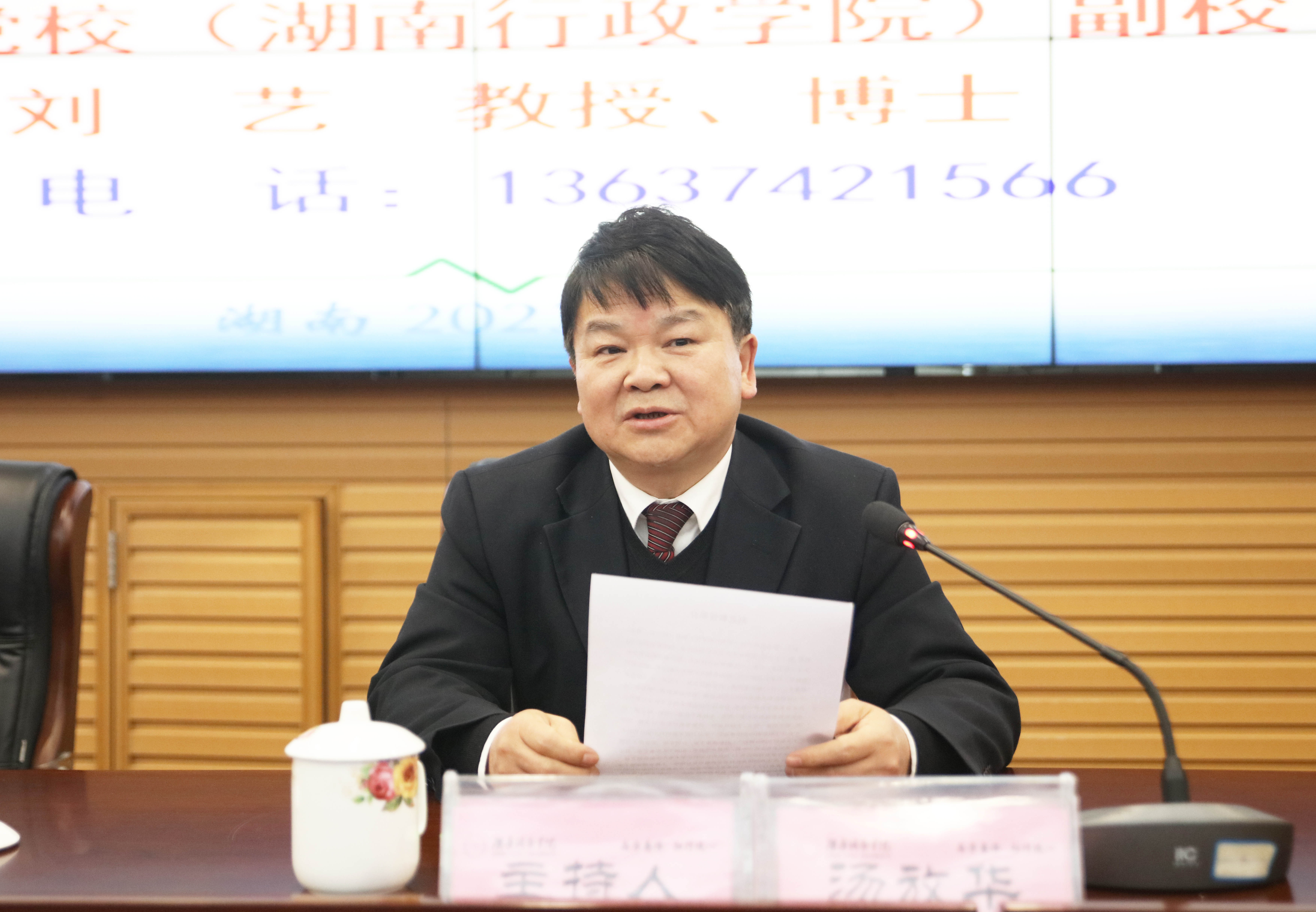 本网讯(通讯员 谢文静)2月25日上午,我校在图书馆报告厅开展处级干部学习贯彻党的二十大精神专题学习。学校党委书记汤放华主持学习并讲话。中共湖南省委党校(湖南行政学院)副校长刘艺教授、我校马克思主义学院夏建文教授分别作了辅导报告。