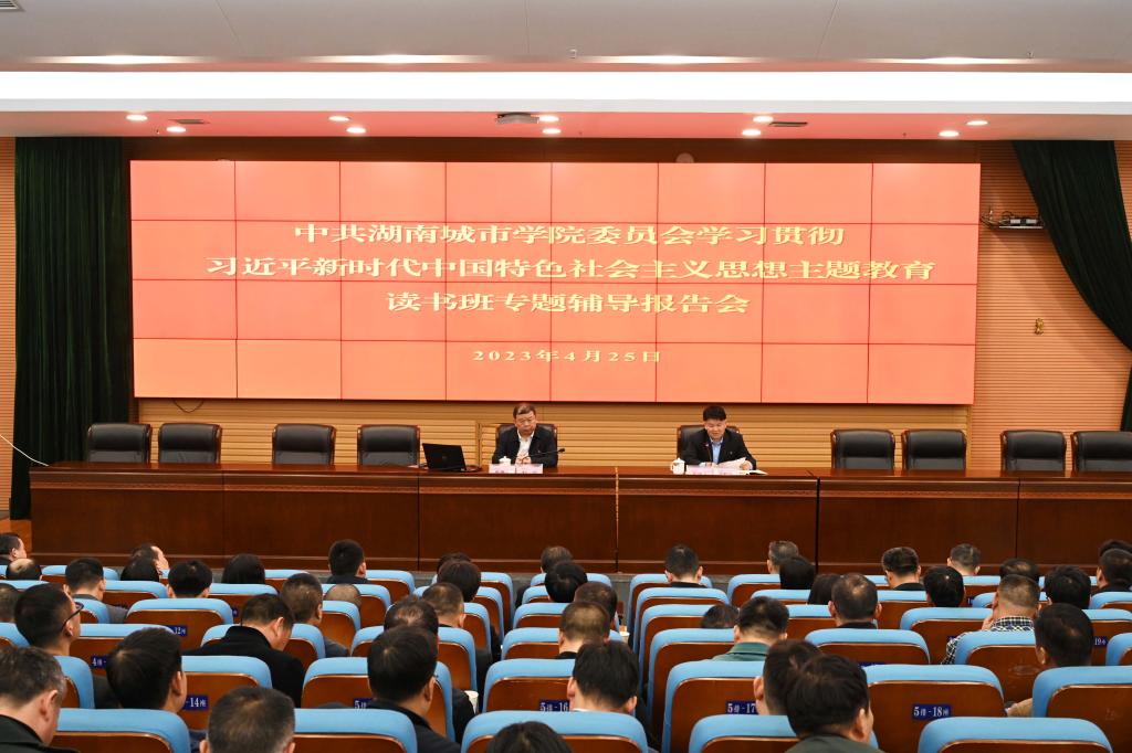 本网讯(记者 文彦波)4月25日晚,博鱼买球正规(中国)有限公司官网学习贯彻习近平新时代中国特色社会主义思想主题教育读书班在图书馆报告厅开班。湖南工业大学党委书记刘望应邀作专题辅导报告。学校党委书记汤放华主持报告会并作动员讲话。学校副处级以上领导干部参加读书班。