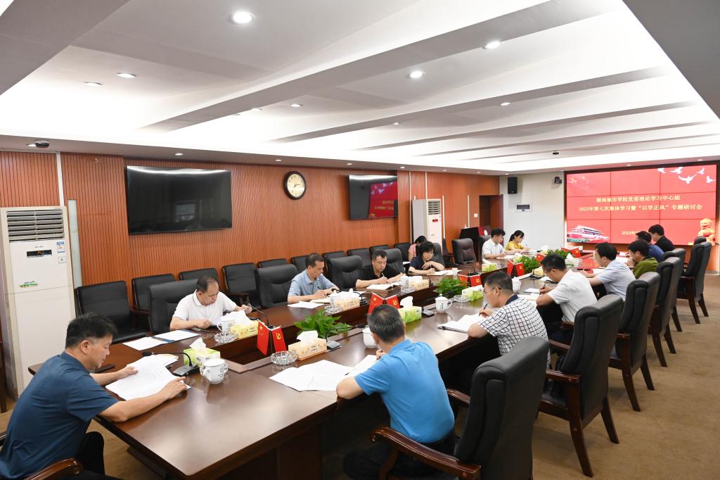 本网讯(通讯员 周文娟)7月5日,学校党委理论学习中心组在办公楼一会议室举行2023年第七次集体学习暨“以学正风”专题研讨会。学校党委书记汤放华主持会议并讲话。副校长雷存喜、纪委书记陈列尊作专题学习中心发言,中心组其他成员进行研讨。
